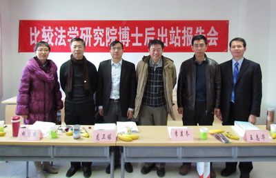 2012年12月5日上午,我院比较法学专业博士后周贤日的博士后出站报告会在学院路校区成功举行。博士后周贤日工作期满,通过了报告会考核专家组评议,顺利出站。